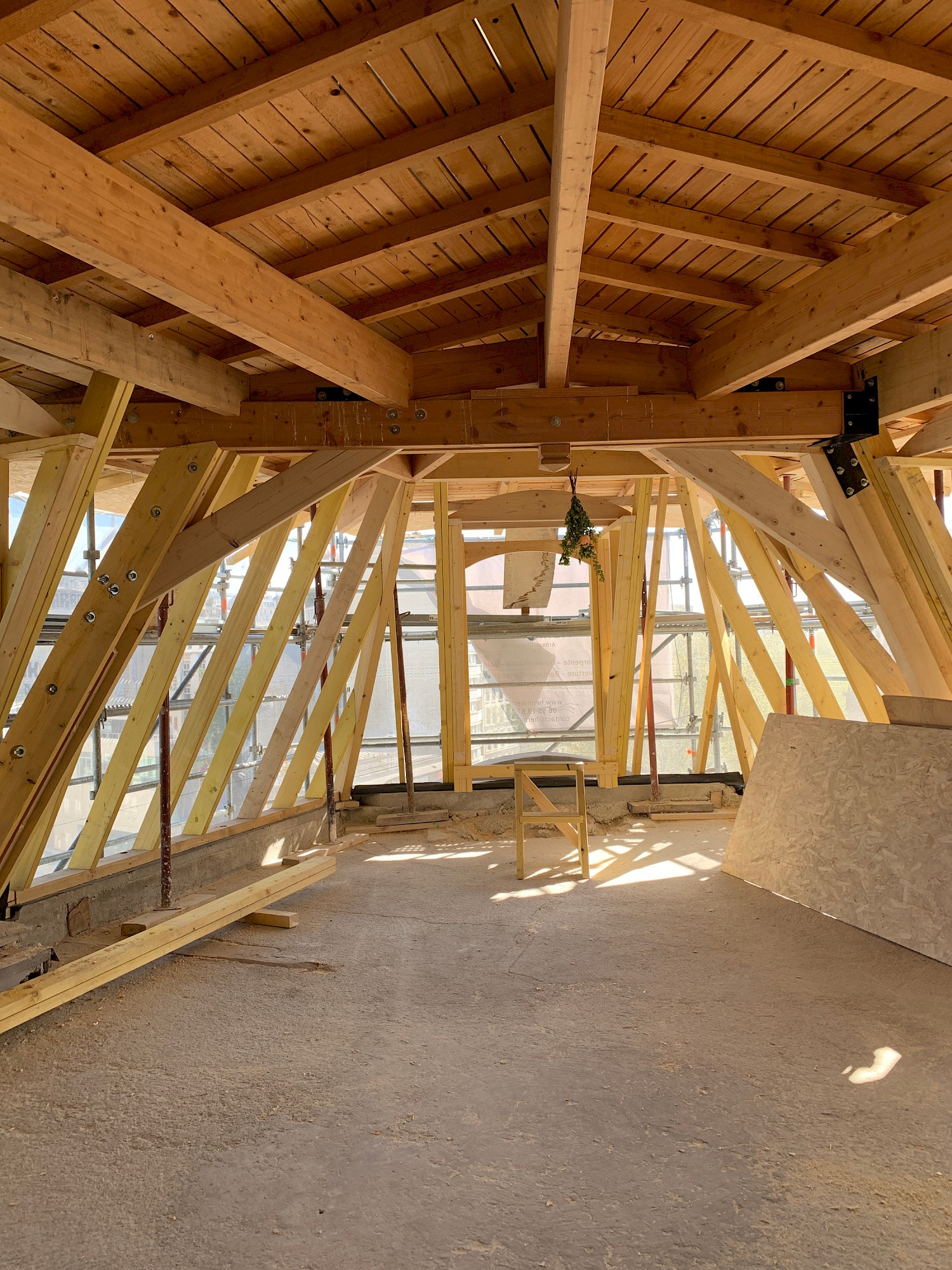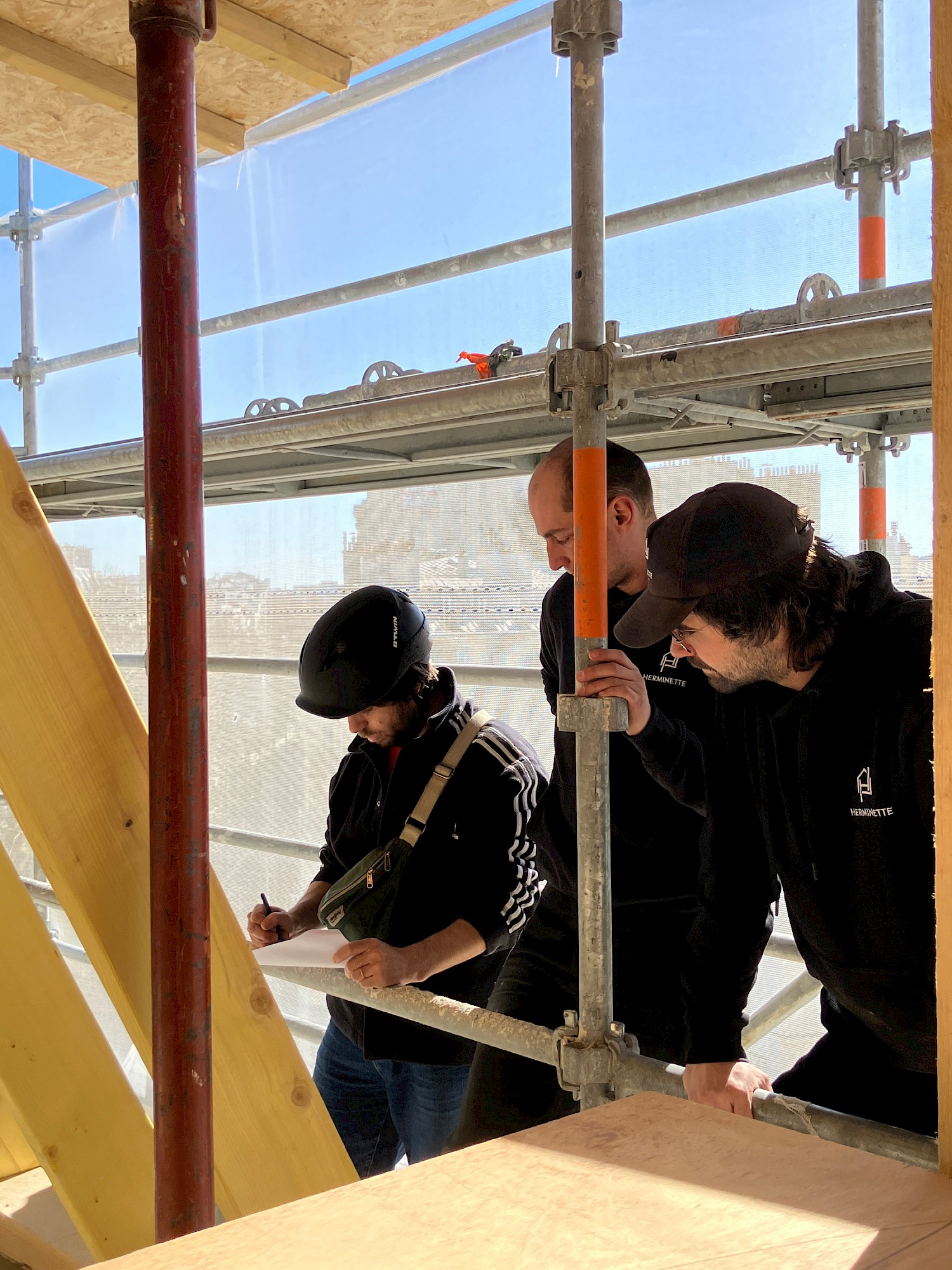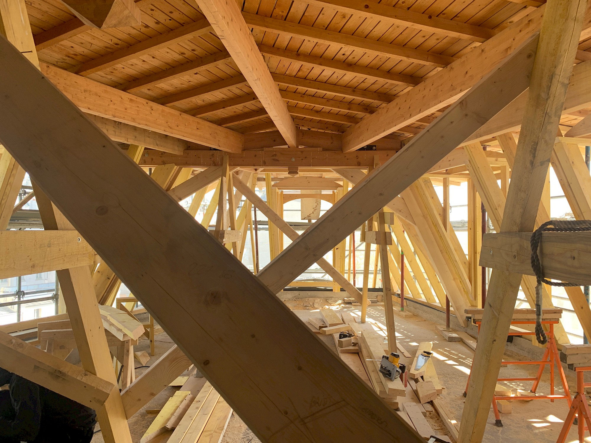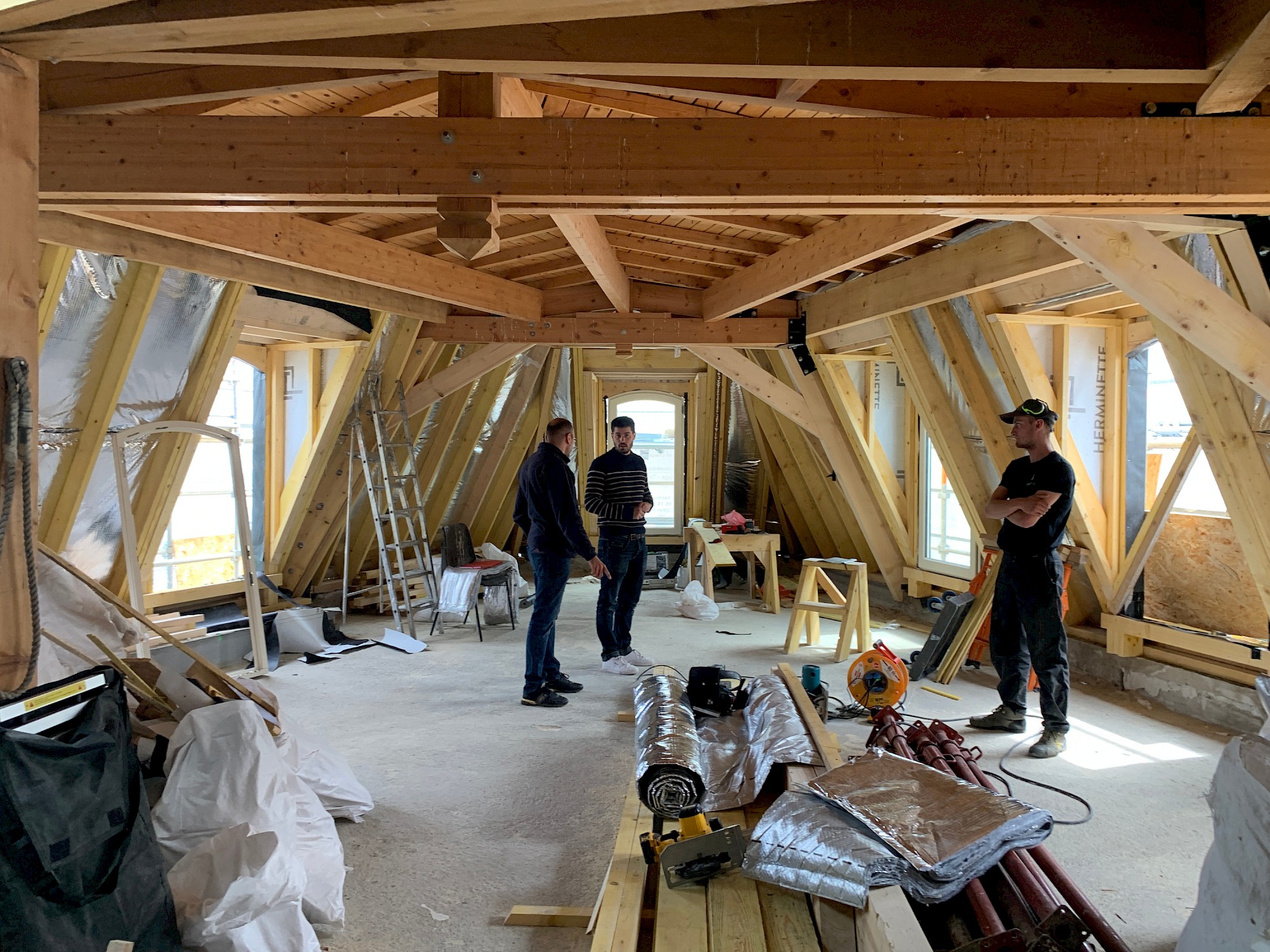 Modification d’une charpente construite sans autorisation en vue de la création d’une mansarde classique avec terrasse en toiture : dépose du faux brisis construit en parpaings, création à neuf d’une charpente de brisis, réduction de la charpente du terrasson, création de lucarnes, création d’un accès à la terrasse en toiture