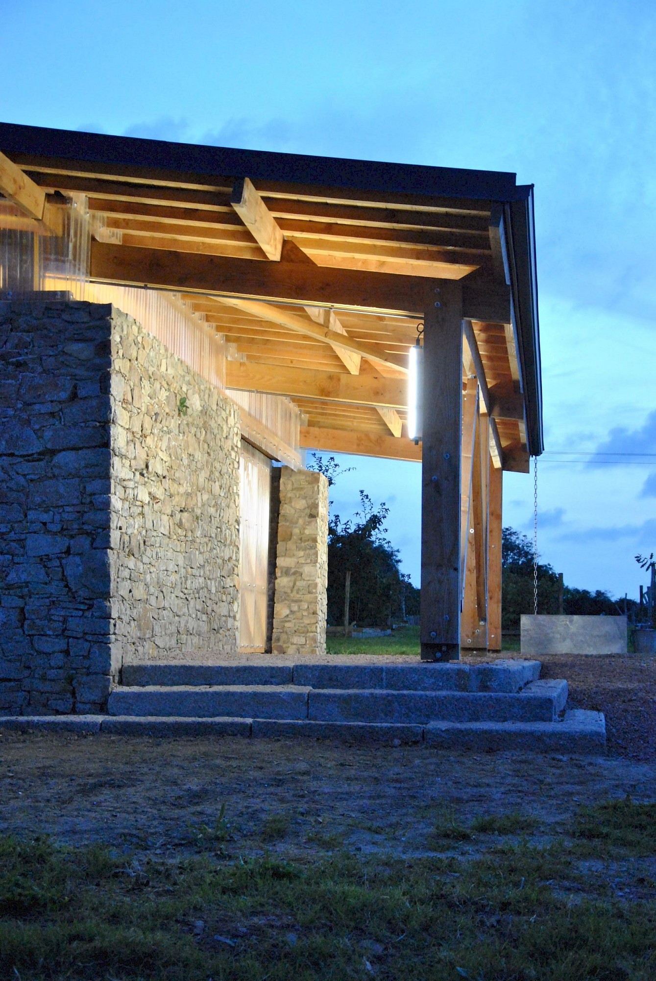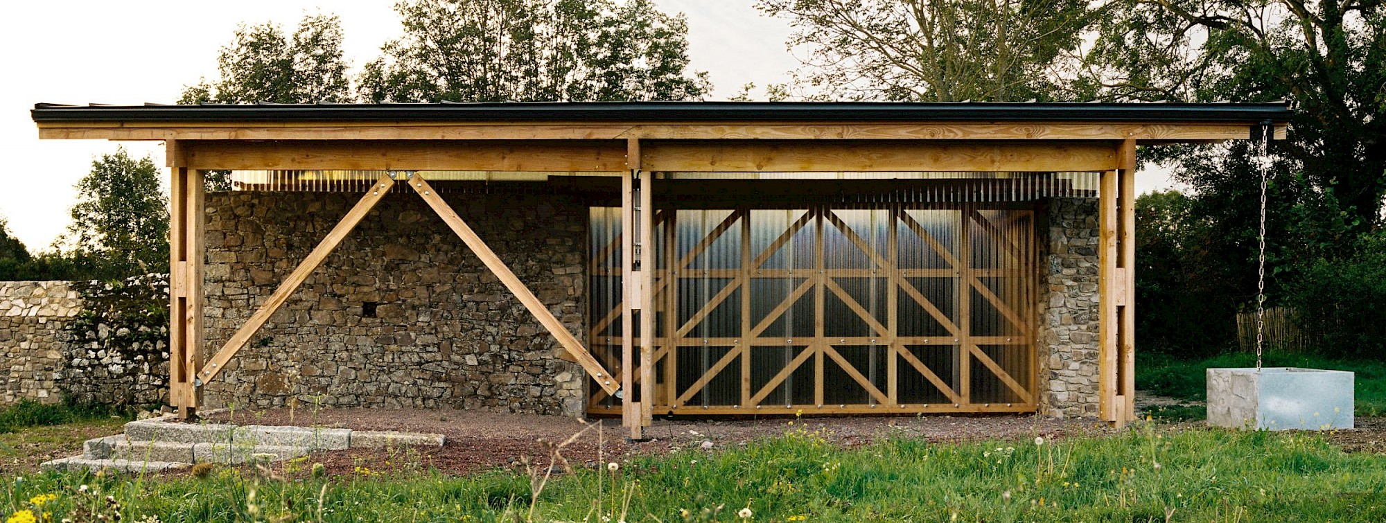 Dans le Parc Naturel de Pirou “Le Jargon des Oïes”, la réhabilitation d’une ruine en pierres et l’intégration en son sein d’une construction en structure bois ont permis la création d’un local multi-usage avec terrasse couverte (stockage, activités, espace buvette…). Projet Primé aux Victoires de l’investissement local 2024