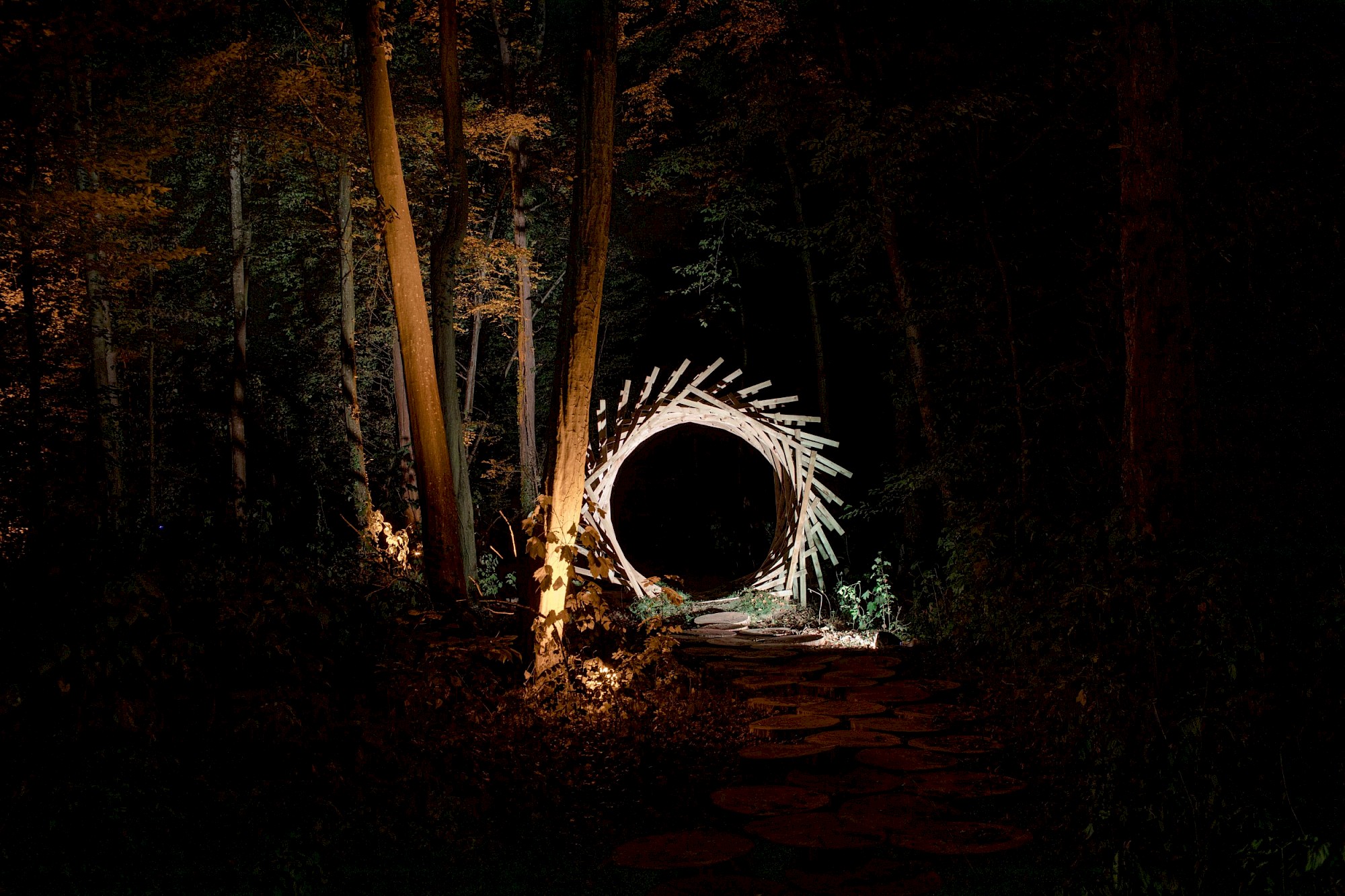 Création d’une arche qui initie le parcours d’exposition au sein de la forêt