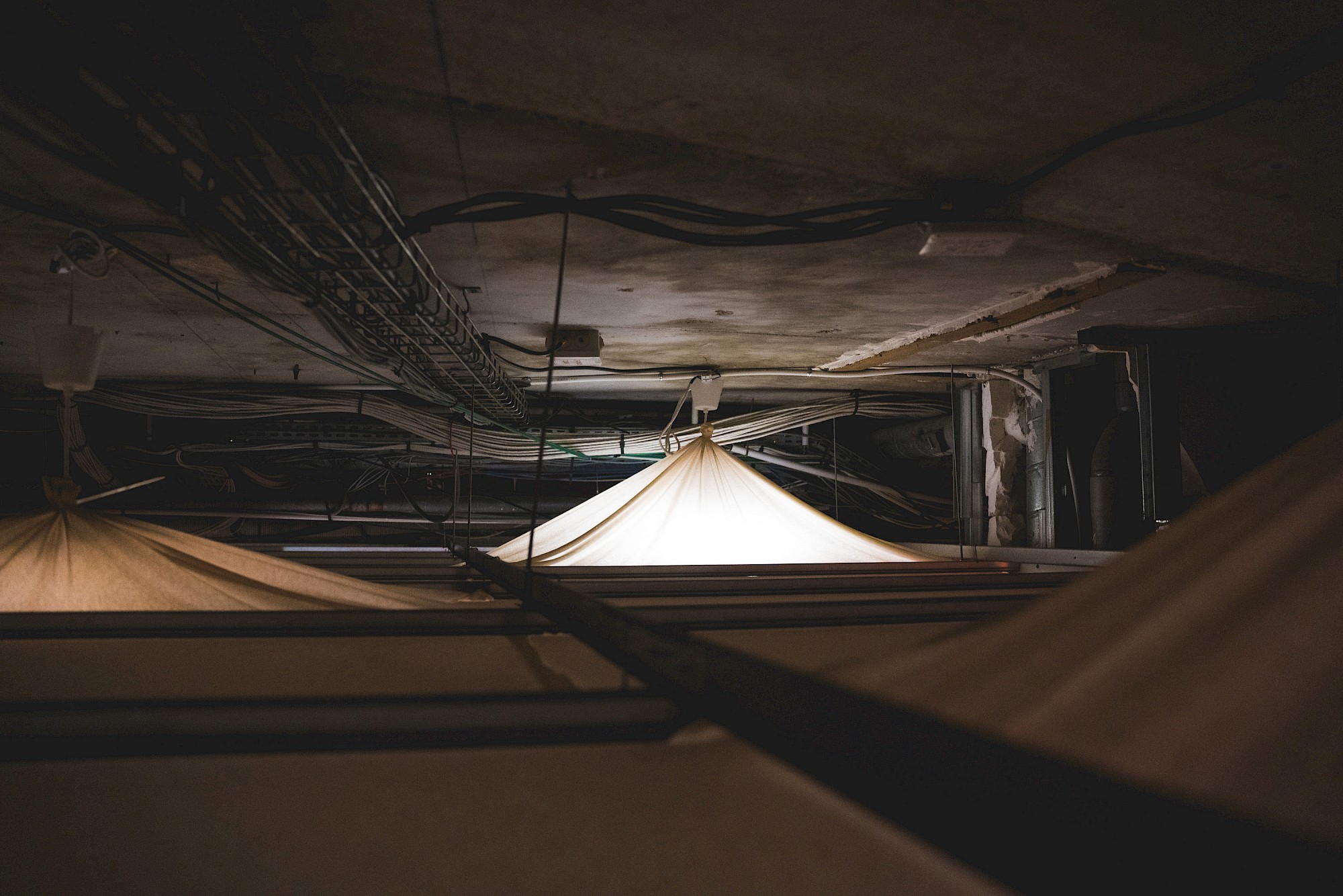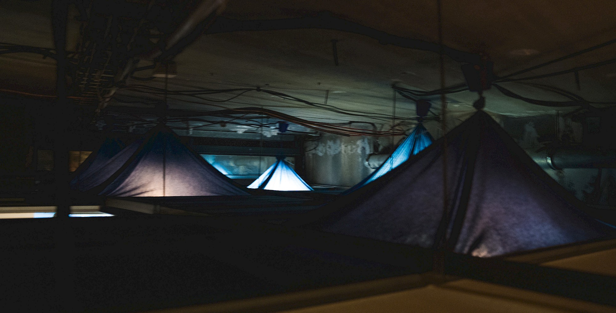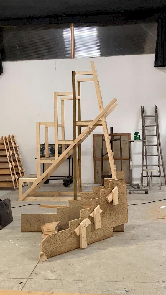 - À proposUn escabeau en bois pour s’élever (bois neufs et sauvés de la benne, cornières métalliques). La découverte d’un monde secret. Une ambiance sonore de gens contents de leur nouveau chez-eux.